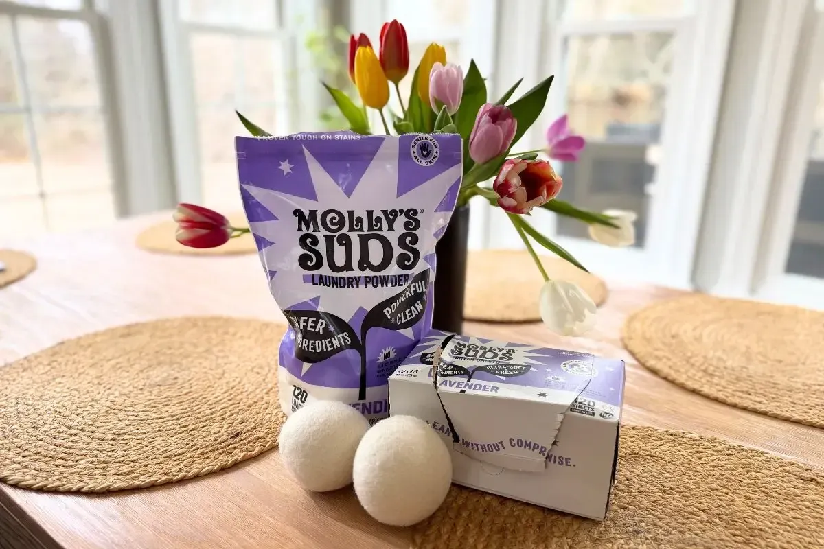 We use Molly’s Suds because they skip the ethoxylation process entirely. Their formula relies on simple, mineral-based ingredients that clean your clothes without leaving behind a trail of carcinogenic byproducts. Their lavender detergent smells heavenly, and we pair it with their dryer sheets and wool balls for fresh, safe loads. Some people add essential oils to their dryer balls, but I’ve found that it leaves oil stains on my clothes.